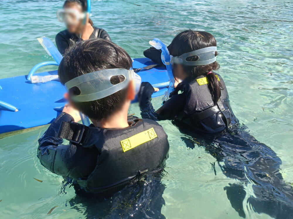 シュノーケルは、この日の海の状態がよくなかったため、ビーチエントリーになりました。