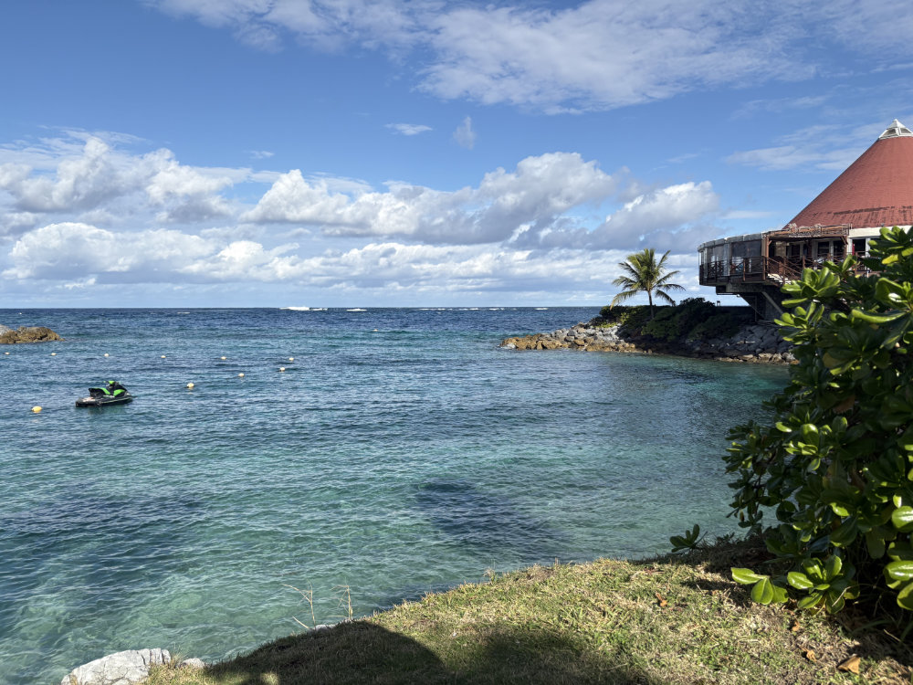 今回の旅ではあまりお天気が良くなかったのですが、曇りでもこの美しさ。ルネッサンスリゾートオキナワは敷地内にビーチがあり、そこではマリンアクティビティも開催されています(要予約)。私たちが参加したマリンアクティビティについては後半の章でご紹介します。
