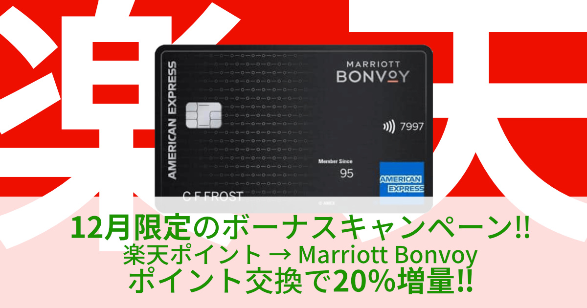 2025年12月1日(月)〜12月31日(水)の期間中、楽天ポイントからMarriott Bonvoyポイントへの交換で、通常の交換レートに加え20%分を自動で増量するキャンペーンが開催されます。